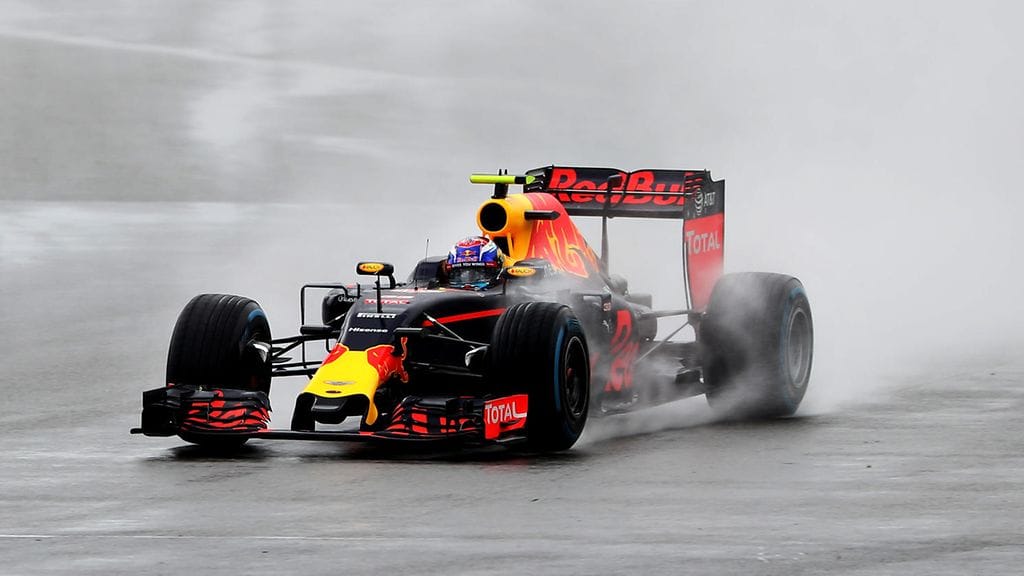 Nico Rosbergin saaman aikarangaistuksen myötä Britannian GP:n toiseksi noussut Max Verstappen viihtyi Silverstonen kostealla radalla.
