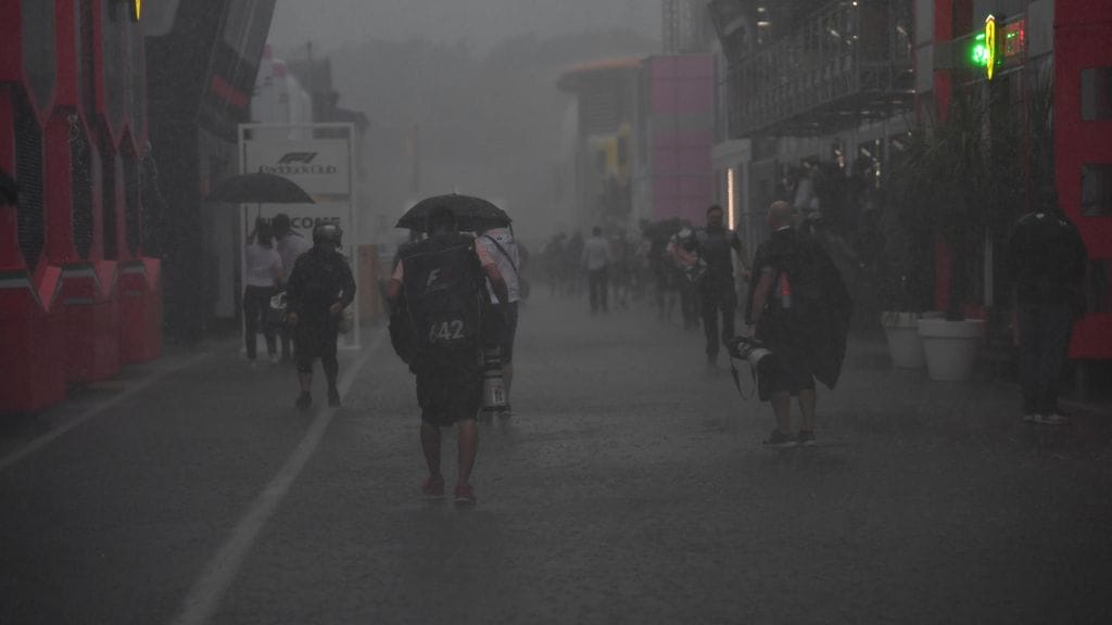 Renault-tallin mukaan sade saattaa jatkua koko päivän. Ainakin ensimmäiset harjoitukset saattavat jäädä tallin ilmoituksen mukaan väliin kokonaan.
