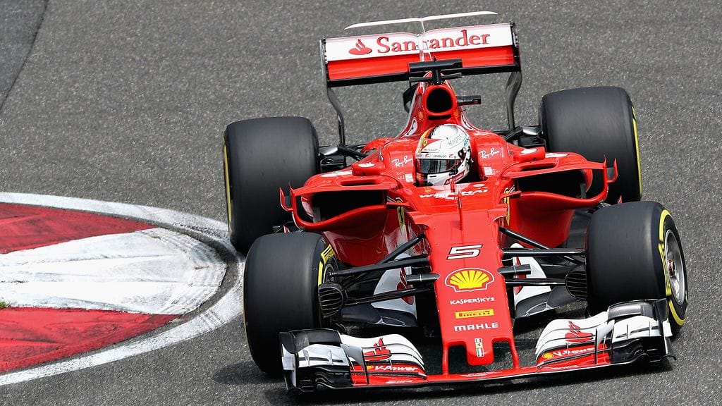 Ferrarin Sebastian Vettel kirosi autossaan, kun kuuli Kiinan F1-aika-ajon tuloksen.