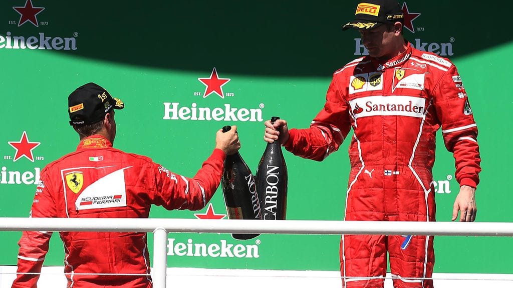 Samalla Vettel nousi Ferrarin sisäisessä voittotilastossa vain yhden ykkössijan päähän tallitoveristaan Kimi Räikkösestä, joka ajaa tiimissä jo seitsemättä vuottaan. Räikkönen on tilastossa (alla) jaetulla 6. sijalla, Vettel kahdeksantena.