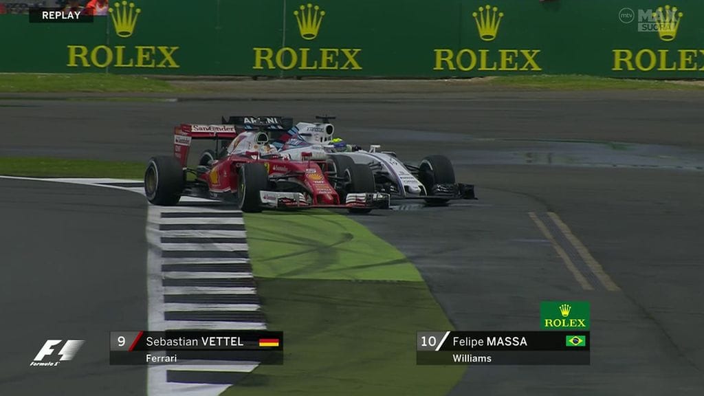Vettelille tuomittiin kisan aikana viiden sekunnin aikarangaistus tilanteesta, jossa hän ohitti Williamsin Felipe Massan. Molemmat kuljettajat ajautuivat ulos radalta, mutta Vettel piti Massan takanaan (video jutun yläpuolella).