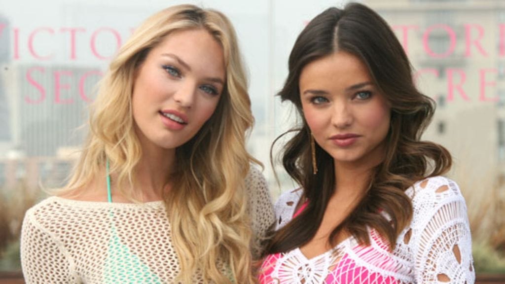 Victoria's Secretin alusvaatemalleina tutuksi tulleet upeat Miranda Kerr, 28, ja Candice Swanepoel, 23, poseeraavat suloisen seksikkäinä brändin uusimmissa uima-asuissa.