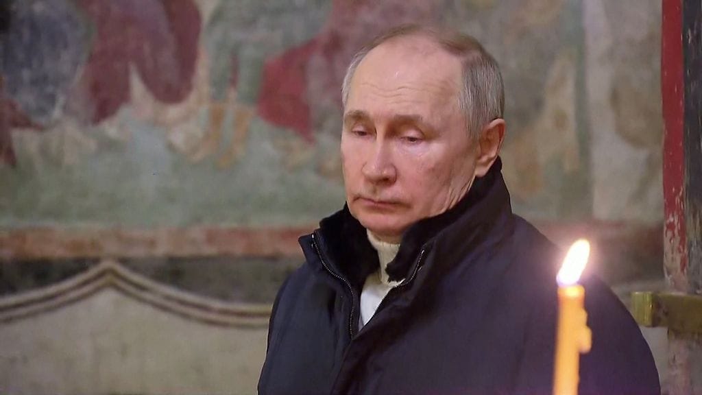 Venäjän presidentti vaikutti synkeämieliseltä ortodoksikirkon joulujumalanpalveluksessa.