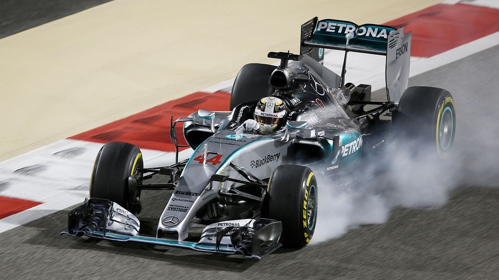 Hamilton kävi kaudella 2014 Bahrainissa poikkeuksellisen tiukan taistelun kilpailun voitosta tallikaverinsa Nico Rosbergin kanssa. Hamilton juhli Bahrainissa voittoa myös viime kaudella.
