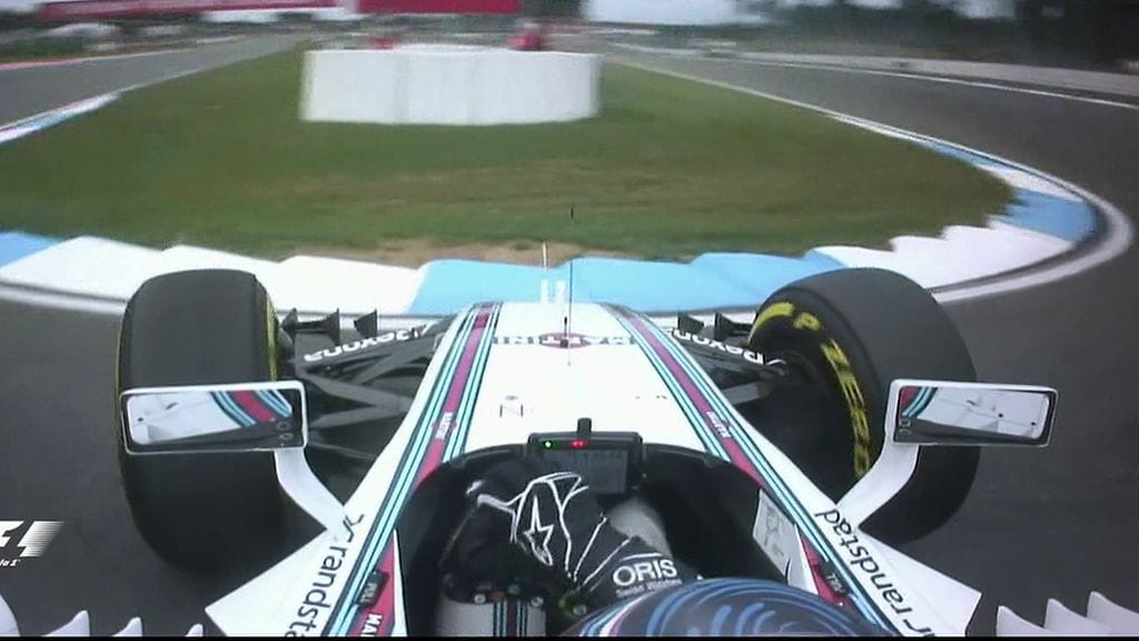 Bottas menetti ensin autonsa hallinnan Hockenheimin radan 6. mutkassa, mutta ei ajautunut ulos ajoväylältä. Williamsin suomalaiskuski jatkoi harjoitusurakkaansa pyöräytettyään autonsa oikeaan suuntaan renkaat sauhuten.