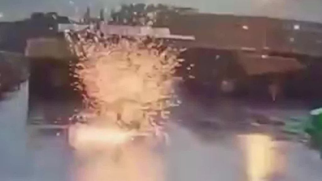 Valvontakameratallenteesta näkyy, kuinka 35-vuotias mies kävelee pihalla sateenvarjo kädessään, kun yhtäkkiä salama iskee ja mies kaatuu maahan liikkumattomana.