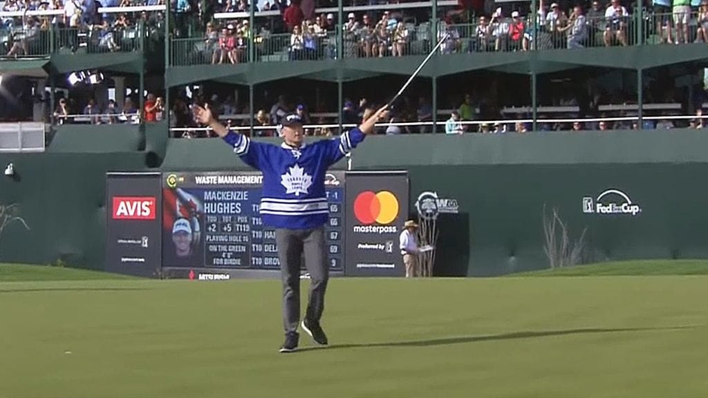 Kanadalaisgolfari Mackenzie Hughes kunnioitti paikallista lätkäsankari Auston Matthewsia Yhdysvaltojen Phoenixissä pelatussa PGA-kisassa viime viikolla.
