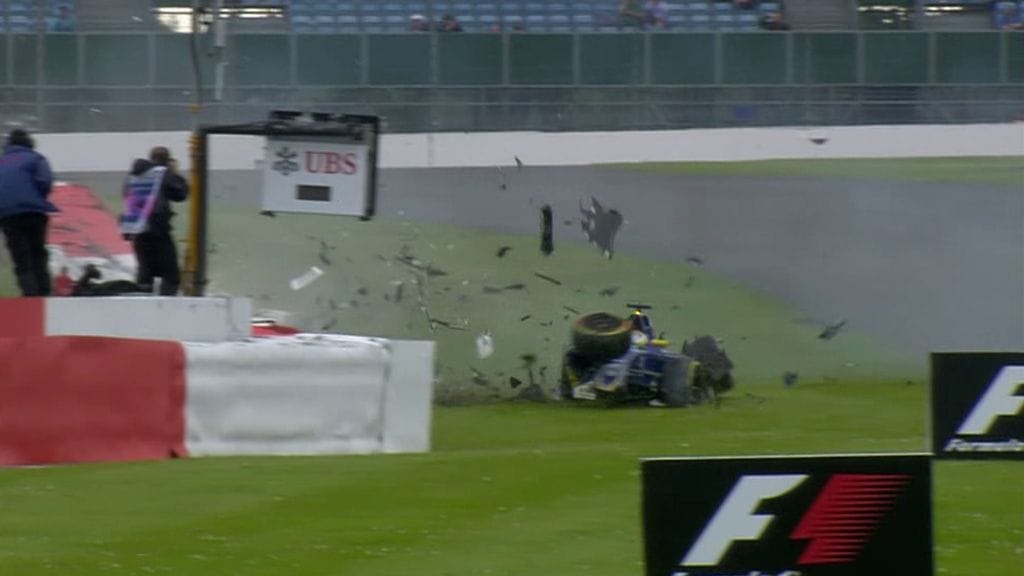 F1-sarjan lääkärit tutkivat ruotsalaista, joka vaikutti saaneet törmäysvoimista niskakipuja. Muuten Ericsson näytti yleisölle peukaloa ja näytti voivan hyvin.