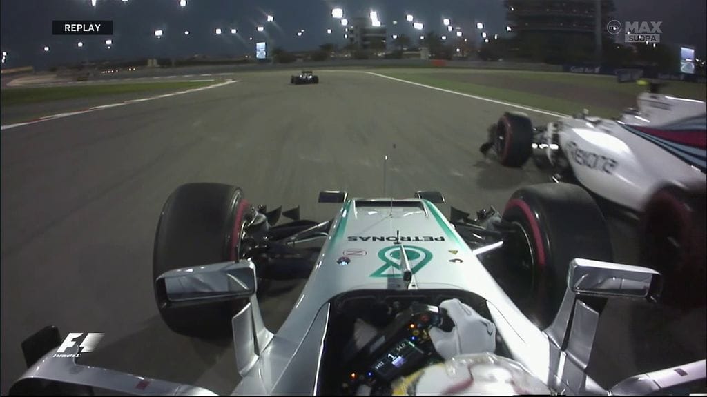 Paalupaikan Nico Rosbergille menettänyt Lewis Hamilton sulki sisäpuolen ykkösmutkassa ja Bottas osui tämän kylkeen. Suomalaisen etusiipi hajosi, mutta Hamilton menetti sijoituksia pudoten yhdeksänneksi. Myöhemmin Bottakselle tuomittiin tilanteesta varikon läpiajorangaistuksen.