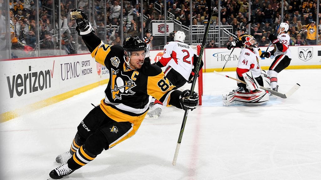 Crosby tykitti kiekon varmasti maaliin Penguinsin kukistaessa Ottawa Senatorsin lukemin 8-5.