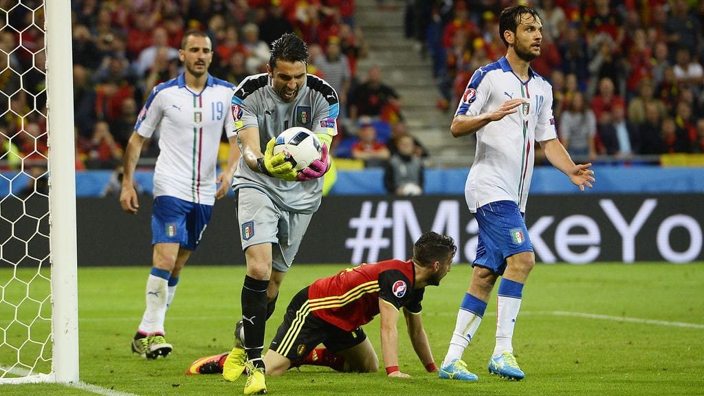 Italian 38-vuotias maalivahti Gianluigi Buffon tuuletti Italian voittoa Belgiasta antaumuksellisesti.