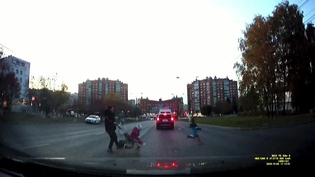 Tšeboksaryn kaupungissa Venäjällä tallentui kameraan 9. lokakuuta hurja tilanne, jossa lapsi juoksi ruuhkaisella autotiellä miltei henkilöauton alle.