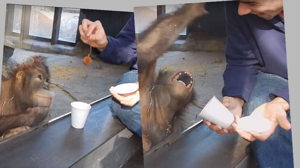 Sympaattisen orangin reaktio taikatemppuun onkin katsomisen arvoinen – yritäpä olla nauramatta!