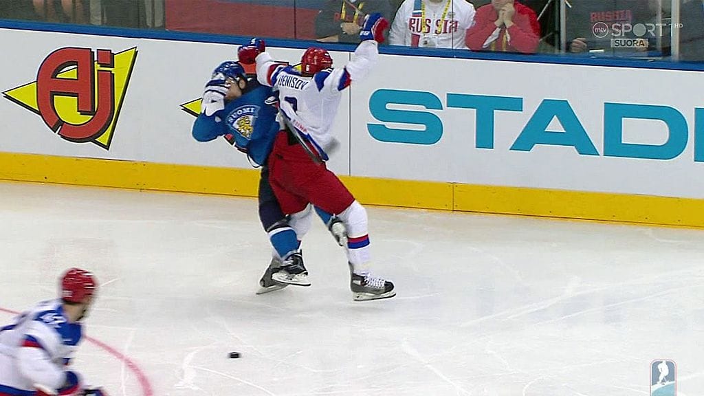 Pekka Jormakan MM-finaali päättyi toiseen erään ja Denis Denisovin taklaukseen.