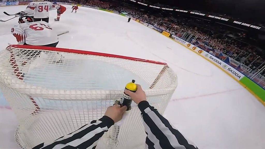 Tiistaina jääkiekon MM-kisoissa Tshekin ja Sveitsin välisessä ottelussa tuomarikameraan tallentui tilanne, jossa tuomari korjasi Sveitsin maalivahdin Leonardo Genonin juomapullon paikkaa.