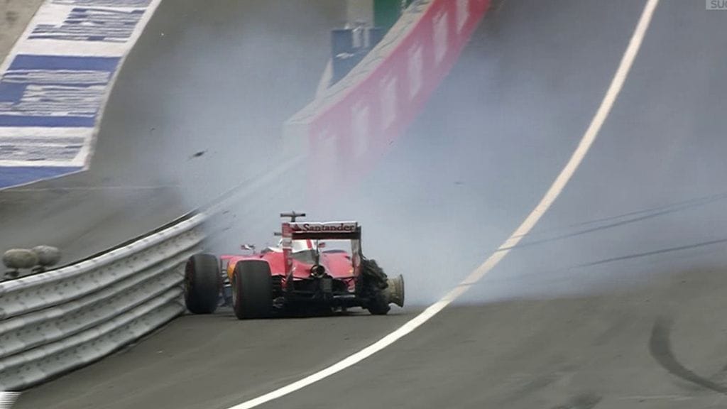 Vettel ehti ajaa kisassa 27 kierrosta superpehmeällä rengasseoksella, kun hänen oikean puolen takarenkaansa räjähti kesken pääsuoran. Saksalaisen auton moottori sammui ja kisa päättyi siihen.