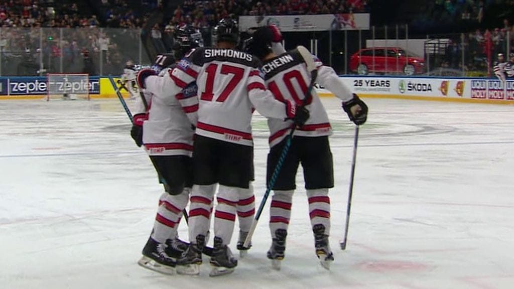 Barrien seuratoveri Nathan MacKinnon survoi Kanadan 2-0-osuman, ja Brayden Pointin syöttö puolestaan kimposi slovenialaispelaajan luistimesta omaan maaliin. Kanada johti ottelua 3-0 ensimmäisen erän jälkeen.