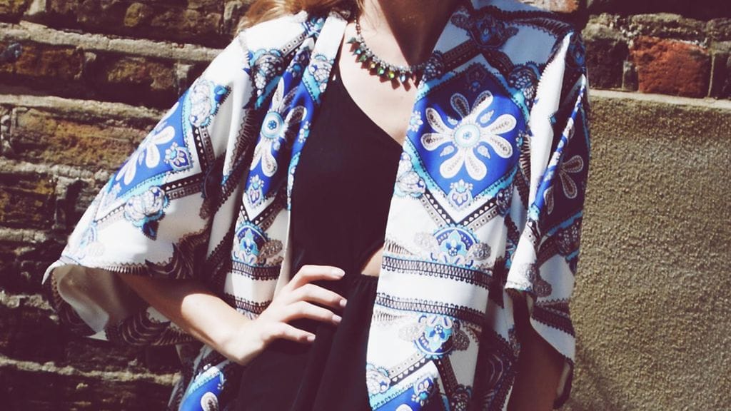 Värikäs, liehuva kimono toimii bleiserin tai neuletakin sijaan loistavasti loppukesän lämmikkeenä.