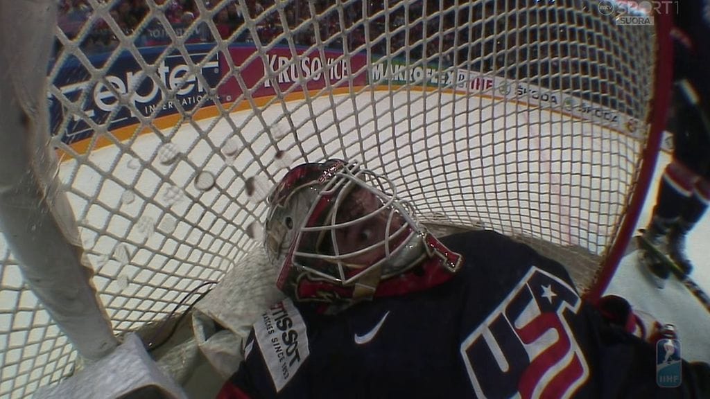 New Jersey Devilsin NHL-vahti jyrättiin lauantain MM-välieräottelussa Kanadaa vastaan oman maalinsa sisään. Kinkaid seurasi heilumaan jäänyttä maalikameraa ja kohotteli sille kulmiaan.