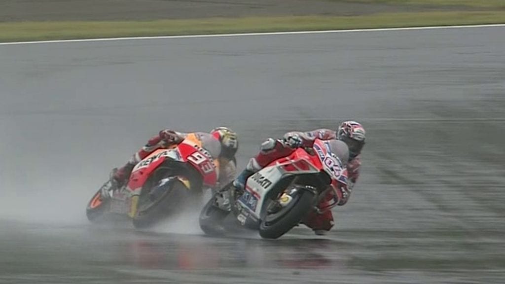 Marquez ja Dovizioso ajoivat muilta karkuun kisan puolen välin jälkeen. Sen jälkeen kaksikko järjesti huikean ohitusnäytöksen, joka ratkesi italialaisen eduksi vasta viimeisissä mutkissa. Marquez taipui Doviziosolle lopultan vain 0,249 sekuntia.