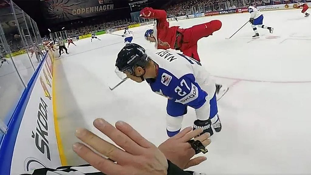 Ottelussa tuominneen suomalaispäätuomari Mikko Kaukokarin kypäräkamera kuvasi hyvin läheltä Slovakian Ladislav Nagyn polvitaklauksen. Nagy sai tilanteesta kahden minuutin jäähyn.