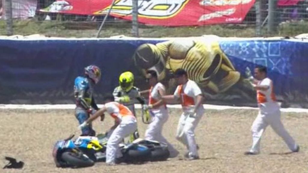 Ducatin Alvaro Bautista ja Hondan Jack Miller kolaroivat kilpailun kuudennella kierroksella. Herroista ensin mainitulla oli ilmeisesti enemmän osuutta rytinään, sillä erityisesti Miller kävi tilanteen jälkeen kuumana.