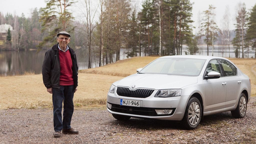 94-vuotiaan Nils-Olof Eklundhin ensimmäisellä ajokortilla sai ajaa myös Fordia. Skodaan ex-rallikuski tutustui jo 60 vuotta sitten. Nykyinen Octavia on Eklundhin 64. menopeli. Teknavin juontaja Hanna-Riikka Hosio kävi viime vuonna jututtamassa teräsvaaria.