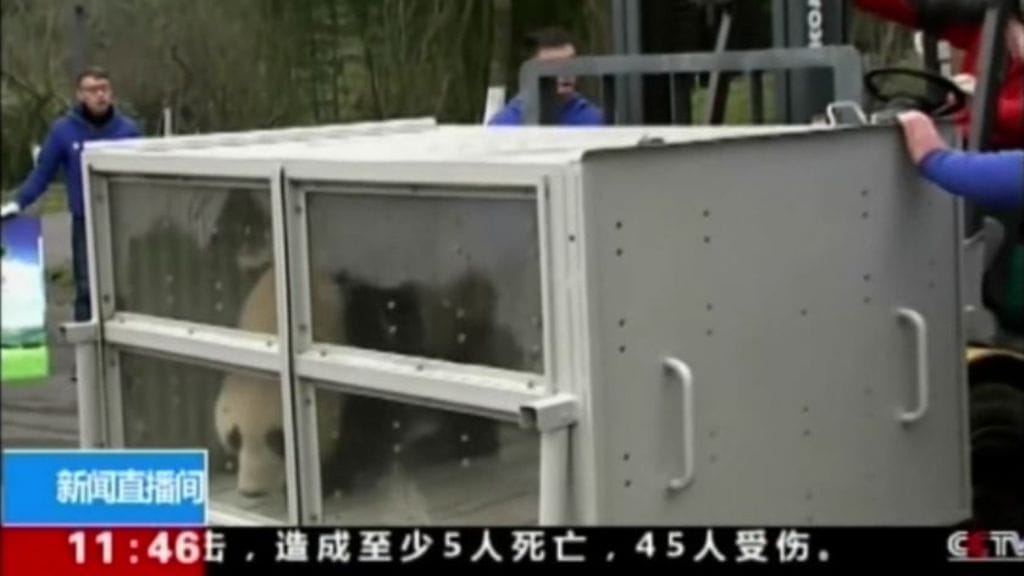 Ähtärissä ollaan iltapäivällä. Jin Bao Bao ja Hua Bao, suomalaisilta nimiltään Lumi ja Pyry, sijoitetaan kuljetuslaatikoihin, jotka ovat kooltaan 180 x 140 x110 cm. Ne ovat lainassa Belgiasta, jonne pandoja kuljetettiin samasta Dujiangyanin tarhasta pari vuotta sitten.