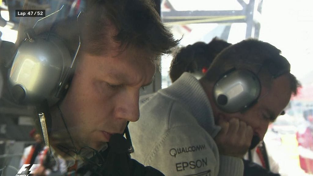 – Vaihdelaatikko-ongelma. Chassis default zero one, tiimi viestitti aluksi. Jälkimmäisellä lauseella Mercedes neuvoi Rosbergia nollaamaan asetukset.