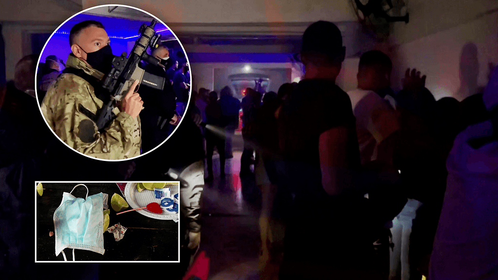 Videolta voi nähdä, miten poliisit aseet kädessä ohjaavat juhlijoita seinustalle. Pidätystilanne onkin paljon massiivisempi kuin mitä esimerkiksi Suomessa ollaan totuttu näkemään.