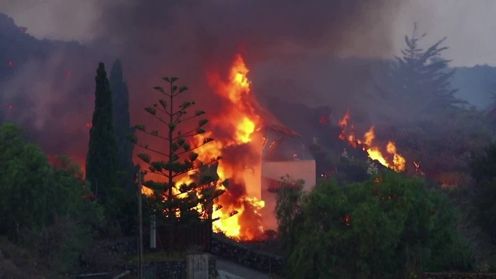 Pahimmillaan kuvat La Palmalta ovat kuin suoraan katastrofielokuvasta, sillä tulivuori on syössyt laavaa jopa satojen metrien korkeuteen. Yllä olevalta videolta näkyy, kuinka laava vyöryy kohti taloja kovaa vauhtia ja nielee sen liekkeihin sekunneissa.