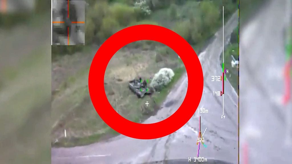 Ukrainan armeijan erikoisjoukkojen julkaisemalla videolla itsemurhadrone väitetysti tuhoaa venäläistankin ja lisäksi kuvaa viimeisen lentonsa. Videon aitoutta ei ole vahvistettu.