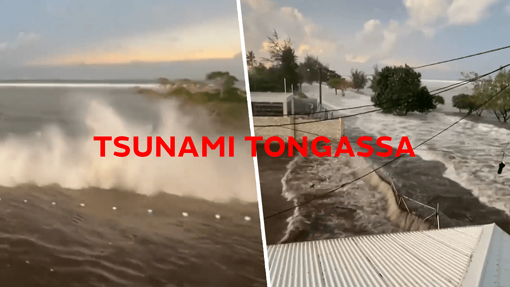 Videolla näkyy hetki, kun tsunami iskee saarivaltio Tongan rantaan vedenalaisen tulivuoren purkauduttua.