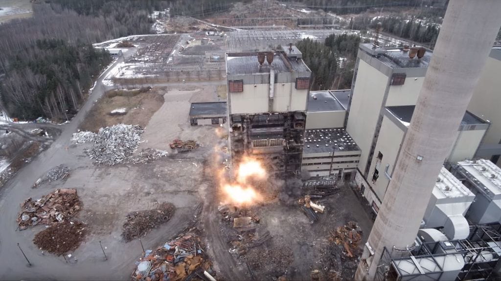 Inkoon voimalaitoksella tehdään parhaillaan purkutöitä. Alueella on kaikkiaan neljä isoa voimalaitosrakennusta, joista ensimmäinen räjäytettiin joulukuun 20. päivä.