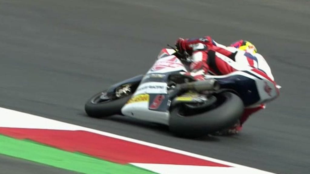 Navarrolla oli myös onnea matkassa: mies oikaisi pyöränsä keskelle rataa, ja onneksi kukaan ei törmännyt häneen. Päätään pyöritellyt Gresini-tallin kuljettaja vaikutti myös itse säikähtäneensä tilannetta.