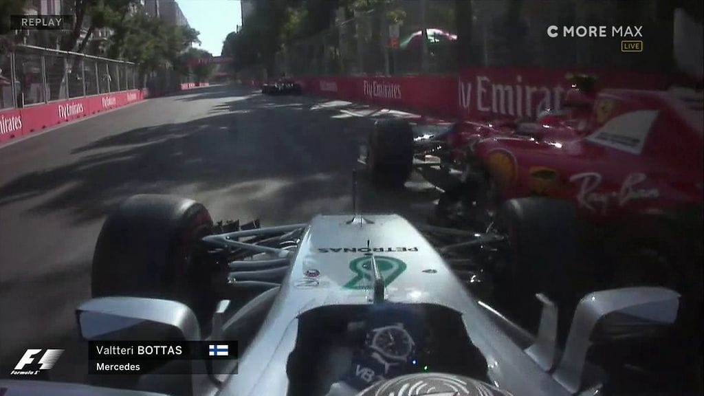 Valtteri Bottaksen ja Kimi Räikkösen kolari formula ykkösten Azerbaidzhanin GP:n startissa oli seurausta Mercedes-kuskin ajettua sisämutkassa kanttikorotuksen yli.