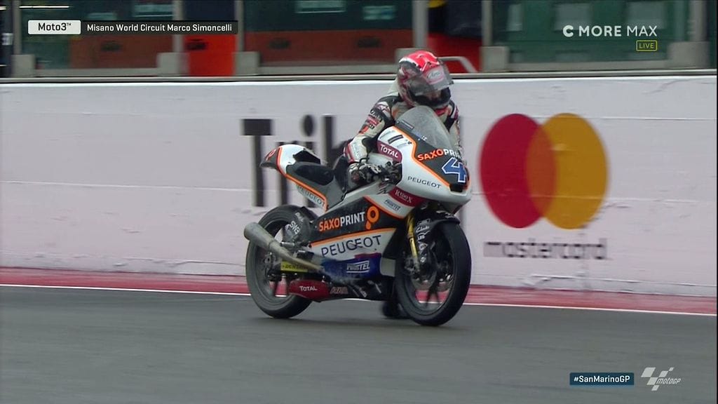 Aki Ajon luotsaaman Moto3-tallin päivä oli kaksijakoinen. Suomalaistallin hollantilaiskuljettaja Bo Bendsneyder oli upeasti kuudes, mutta Niccolo Antonelli kaatui peräti kaksi kertaa ja keskeytti.