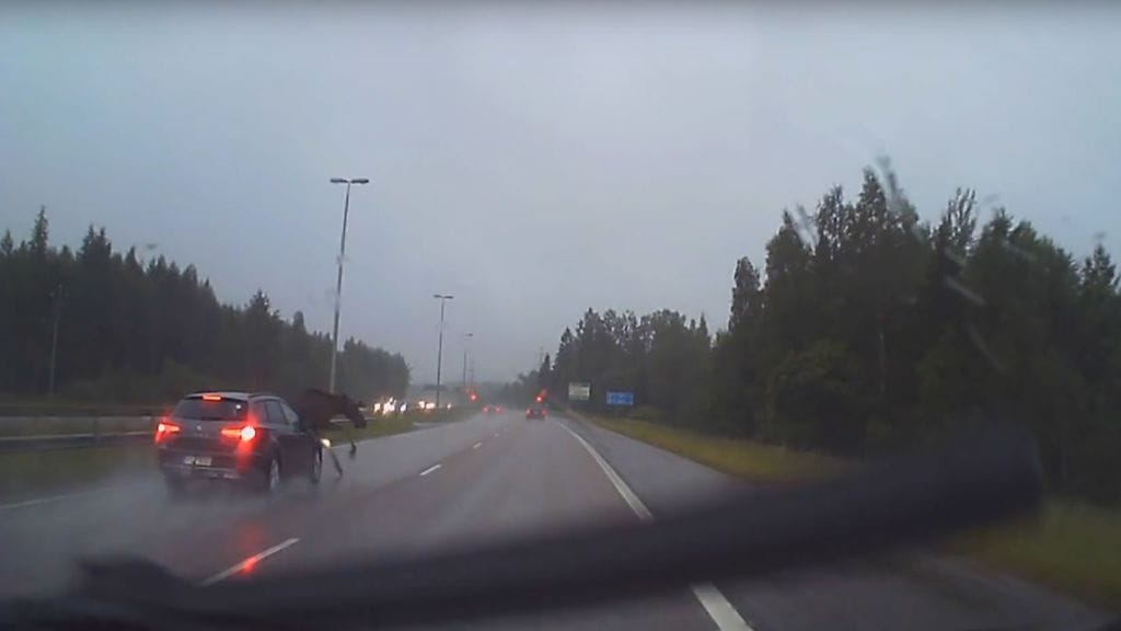 Poikkeuksellisen raju video hirvikolarista näyttää, miten yllättäen yhteentörmäys voi sattua moottoritiellä.