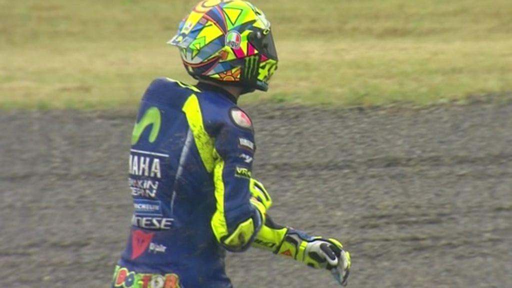 Valentino Rossin MotoGP-kisa Japanin Motegissa päättyi keskeytykseen kaatumisen seurauksena.