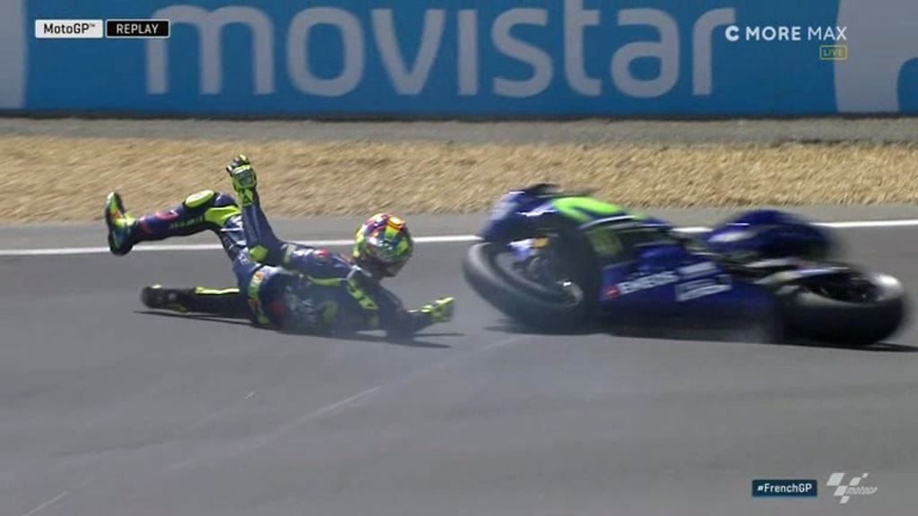 Rossi sortui kuitenkin pieneen virheeseen viimeisellä kierroksella ja menetti johtoasemansa. Rossi yritti ottaa vielä väkisin tallikaveriaan kiinni, mutta Yamaha-kuljettajan kisa päättyi lopulta kaatumiseen.