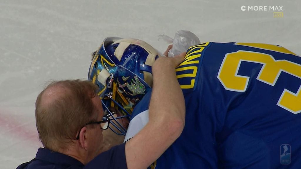 Lundqvistia jouduttiin hoivaamaan jäällä toisen erän loppupuolella, kun Sveitsin Denis Hollenstein rynnisti maalille ja törmäsi samalla Lundqvistiin.