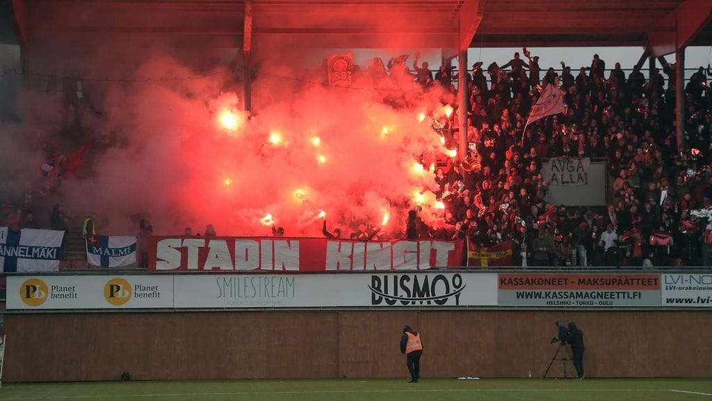 Suuri joukko HIFK:n faneja matkasi paikallisjunalla Vantaan Myyrmäkeen seuraamaan ottelua. Kannattajat juhlistivat HIFK:n avauskamppailua kyseenalaisella tavalla, sillä heti ottelun alussa HIFK:n fanikatsomossa roihusi useita soihtuja.