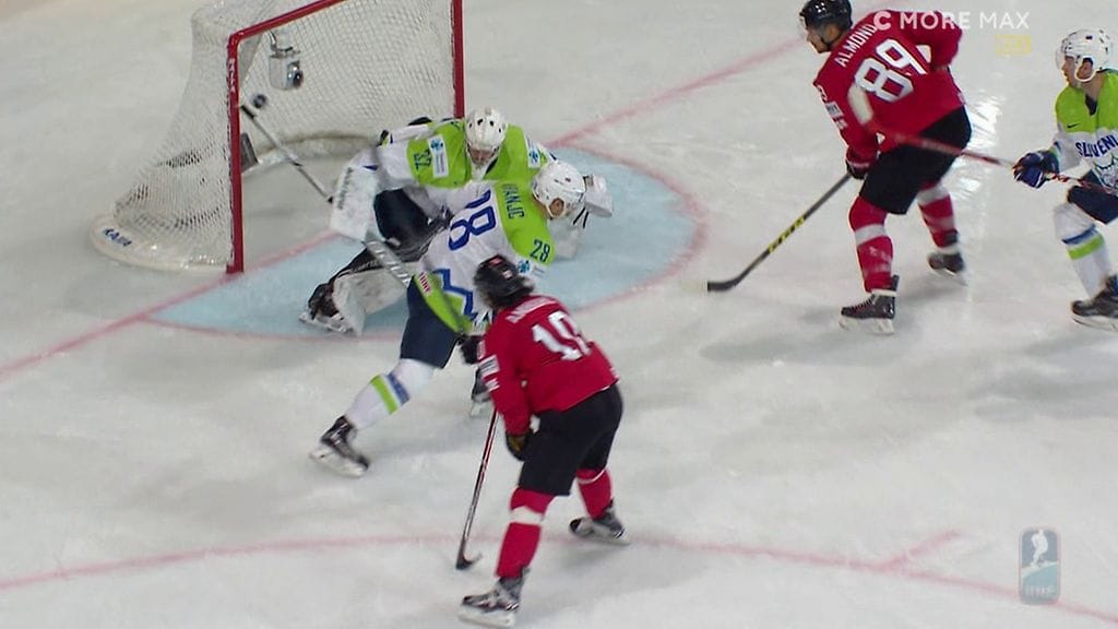 Konkarihyökkääjä Andres Ambühl siirsi alppimaan johtoon erän puolivälin jälkeen. Ambühlille avautui vapaa väylä maalille, ja kapteeni nosti kiekon rystyllä ohi Slovenia-vahti Gasper Kroseljin.