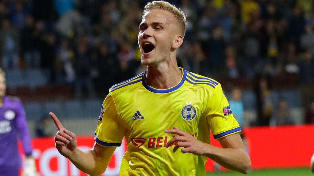 Pääkuvan videolla BATE-hyökkääjä Tuomisen taidokas 1-0-osuma Vidin verkkoon.