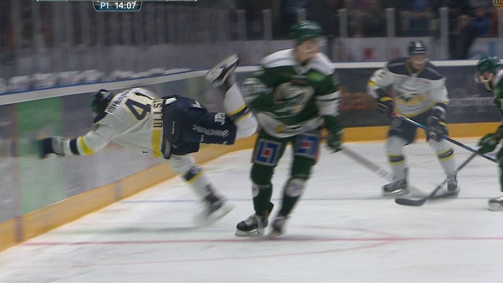 Ullström yritti taklata avauserässä Färjestadin Joel Eriksson Ekiä, mutta ajoi vastustajasta ohi, menetti tasapainonsa ja lensi vaarallisesti pää edellä kohti laitaa.