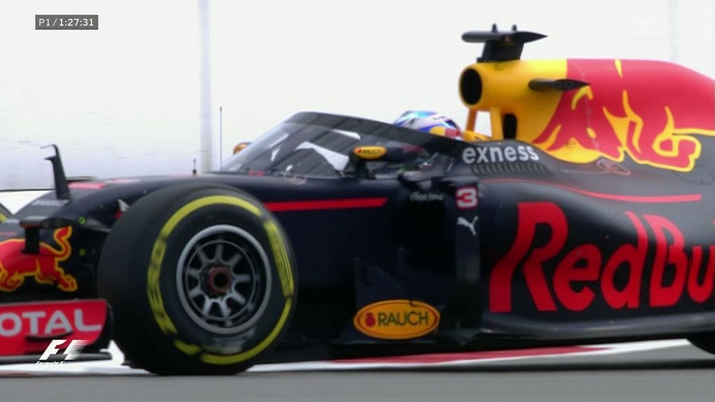 Red Bull testasi tuulilasilla varustettua puolikuomua Ricciardon autossa Venäjän F1-radalla. Toisen kuljettajan Daniil Kvjatin autossa kuomua ei perjantain harjoitusten alussa nähty.