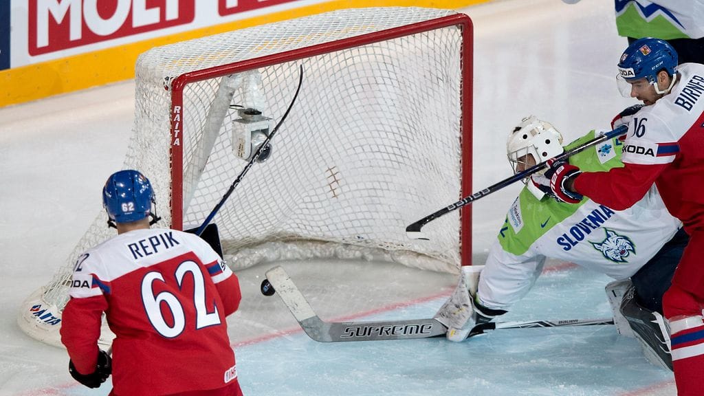 Tshekkihyökkääjä Roman Horak ampui kiekon maalin sisällä olevaan kameraan jo ajassa 8.20, mutta kiekko kimposi nopeasti takaisin ja pelaaminen jatkui. Peli katkaistiin vasta 1.23 minuutin päästä, kun Michal Repik oli ampunut pelivälineen selvemmin pömpeliin.