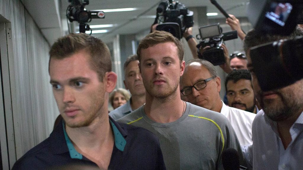 Uimarit Ryan Lochte, James Feigen, Gunnar Bentz ja Jack Conger joutuivat vaikeuksiin, kun tapausta selvittänyt syyttäjä halusi heidät kertomaan lisää sosiaalisessa mediassa ilmoittamastaan aseellisesta ryöstöstä.
