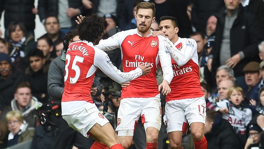 Arsenalin Aaron Ramsey iski päivän Tottenham-Arsenal-pelissä yhden kauden upeimmista osumista.