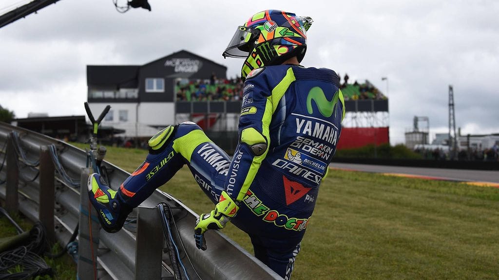 MotoGP:n italialaisella tähtikuskilla Valentino Rossilla oli teknisiä ongelmia Saksan GP:n kolmansissa harjoituksissa lauantaina.
